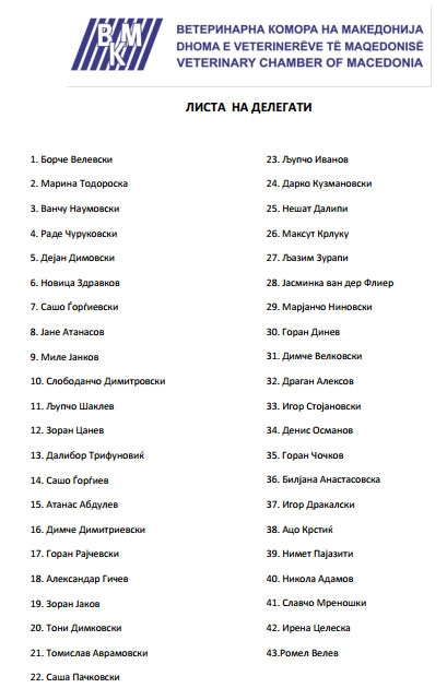 Избрани делегати во Собранието на Ветеринарна комора